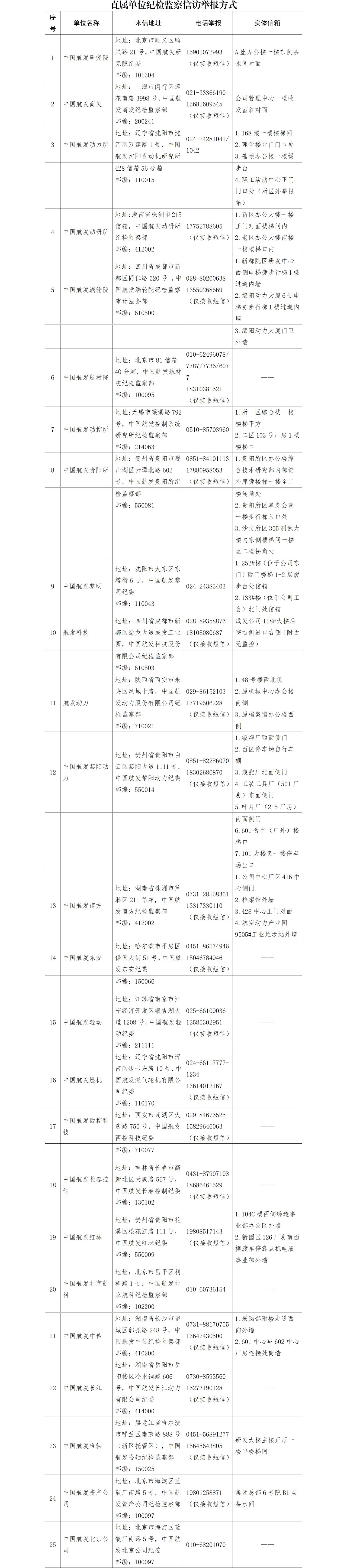 來信地址:北京市海淀區藍靛廠南路5號,中國航發集團紀檢監察組(郵編:100097)