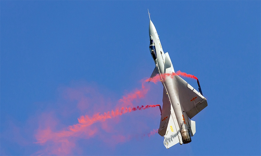 配裝“太行”發動機發展型的殲10B推力矢量驗證機
