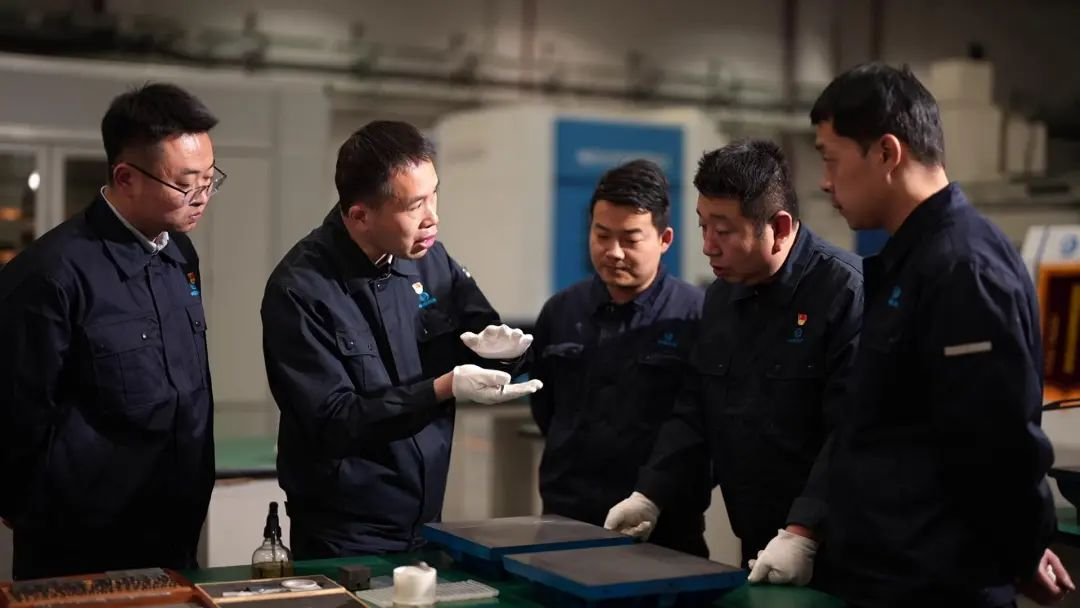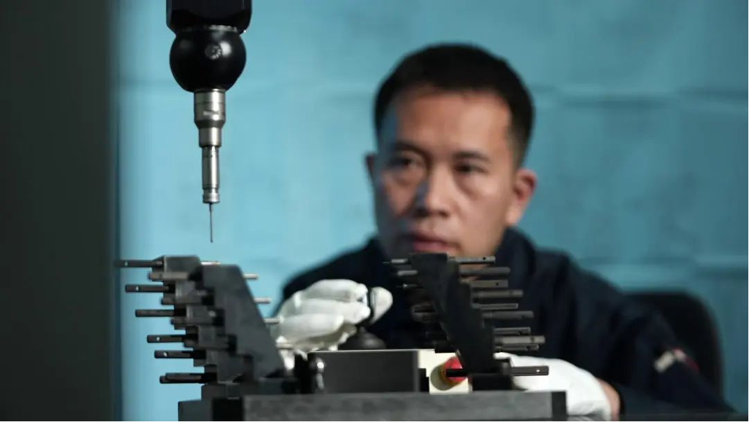 ??全國勞動模范夏復山是中國航發動力股份有限公司鉗工特級技師鋼針、研磨膏是他的“武器”三尺鉗工臺是他的“戰場”他可以將6根鋼針在研磨板上同時研磨一個直線往復剛好磨掉0.0003毫米夏復山說:“每一次授力研磨掉微米級的余量我都心中有數”30個來回每次兩只手的力度不能有絲毫偏差否則6根鋼針就會完全廢掉30秒后6根尺寸、精度完全一致的鋼針研磨完成它們精度均為0.001毫米這些鋼針有個專有名詞塞規以插入的方式檢測孔的大小這就是航空發動機葉片氣膜孔的終極檢具航空發動機在工作時上千件葉片在高溫、高壓、高轉速的環境中承受著巨大的熱負荷、氣動負荷和離心負荷葉片上密集的氣膜孔使葉片表面形成一層冷卻氣膜有效隔絕了高溫燃氣一旦鋼針的精度出現超過0.001毫米偏差將會影響氣膜孔尺寸大小氣膜孔出來的冷氣就會覆蓋不均導致表面溫度分布不勻局部應力偏大葉片就有斷裂的風險這對發動機和飛機的危害可能是致命的0.001毫米是確保我國國產飛機發動機性能穩定的標尺是迄今為止機械研磨仍無法完成的精度更是極少數航空大國才能達到的精度
